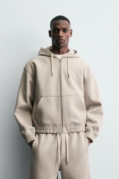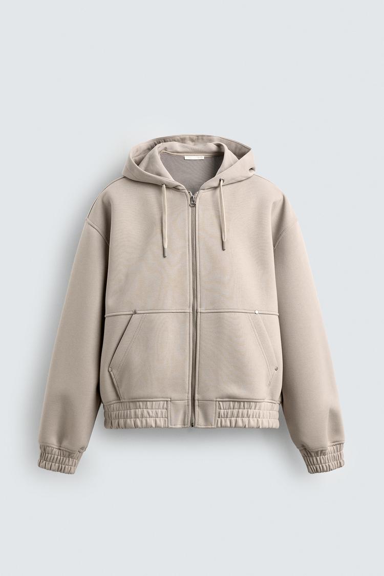 NEOPRENE EFFECT HOODIE SWEATSHIRT WITH ZIPPER