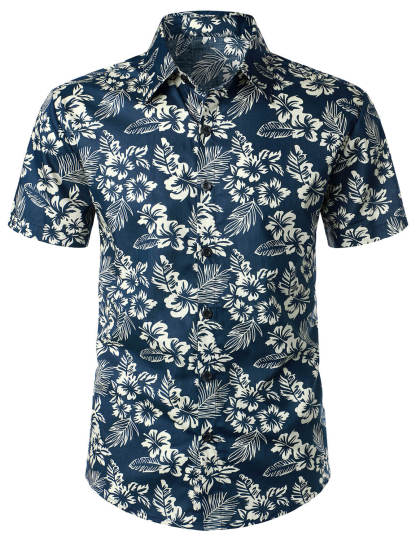 Men's Short Sleeve Aloha Hawaiian Shirt in Breathable Cotton with Floral Print